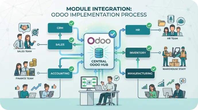 We integrate Odoo with payment gateways, e-commerce platforms, accounting systems, and third-party applications for a fully connected business ecosystem.